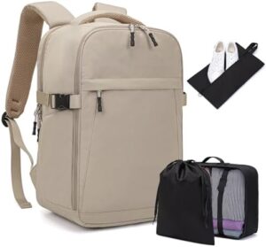 Mochila Avion 40x20x25 para Ryanair Mujer Mochila de Viaje Cabina Avion 20L Equipaje de Mano con Puerto USB Pequeña Maleta Cabina Mochila Portatil 14 Pulgadas para Trabajo, Escuelas, Beige