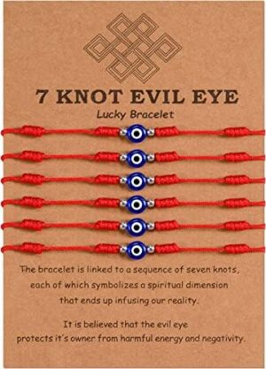 MANVEN 6 Piezas Pulsera Roja 7 Nudos Pulseras de Mal de Ojo Tejido a mano ajustable Amuleto de la suerte Kabbalah pulsera hilo rojo del destino Protección Para mujeres Hombres Niñas Niños