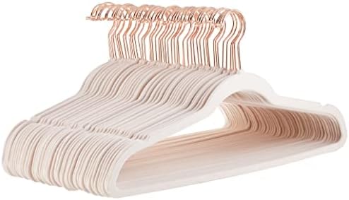 Amazon Basics perchas para ropa, antideslizantes, delgadas, con acabado de terciopelo, Paquete de 50, tono rosado/dorado rosa
