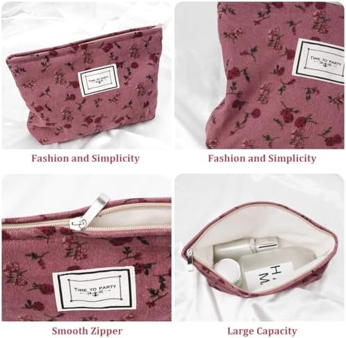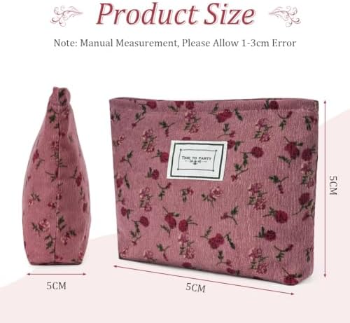 🌷【Espacioso y portátil】La bolsa de lona de pana que mide 26*20*5 cm tiene suficiente espacio para sus artículos. Ligero y portátil. El neceser y no ocupará mucho espacio en tu equipaje. Perfecto para poner en cualquier bolso o maleta para viajes, fines de semana, viajes de negocios o citas.