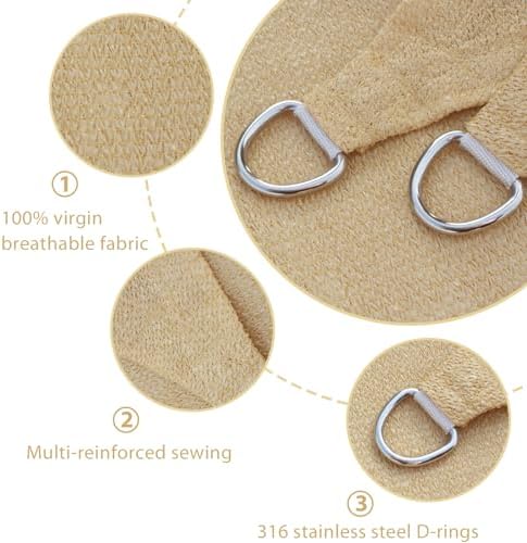 ★【Construcción Duradera】: Diseño de borde cóncavo para un mejor estiramiento. Cada esquina tiene un anillo D de acero inoxidable 316. Cinta pesada tejida cosida alrededor del borde de la vela, Hacer que el tela sombraje sea aún más estable. Todos los bordes tienen costuras reforzadas de doble grosor para evitar el deshilachado y la deformación de los bordes