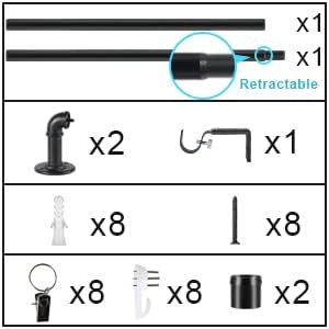 La barra de cortina metálica consiste en 2 barras de soporte y una barra de extensión. La longitud de la barra de cortina se puede ajustar ajustando la barra de extensión para adaptarse a su ventana.