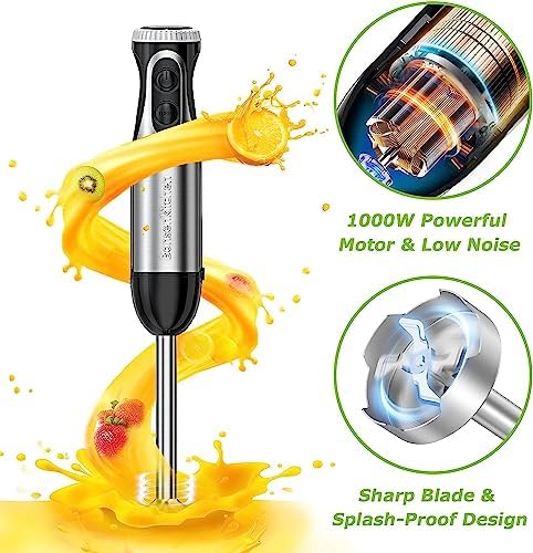 【Potencia suficiente】La batidora de mano Bonsenkitchen está equipada con un motor de alto rendimiento de 1000 W, que es duradero e ideal para picar de manera eficiente ingredientes duros como nueces y carne, lo que reduce el tiempo de preparación de alimentos.