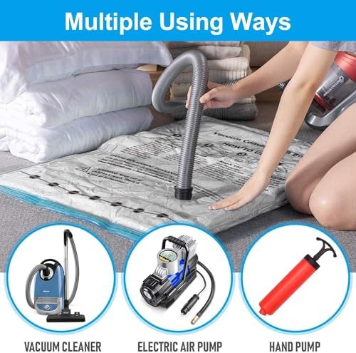 [Ahorre de 3 a 8 Veces el Espacio] La bolsa de almacenamiento al vacío puede ayudarlo a ahorrar hasta un 80% del espacio de almacenamiento. Obtenga más espacio de almacenamiento para sus maletas, armarios, sótanos, áticos y garajes.