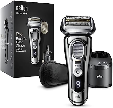 Elegida afeitadora en estudios independientes*. La afeitadora eléctrica eficiente (productos probados frente a los productos de gama), reinventada para ser aún óptima. La Series 9 Pro es eficiente y suave en cada pasada, independientemente de si se afeita una barba de 1, 3 o 7 días. La afeitadora para hombre cuenta con la recortadora ProLift que levanta y corta el pelo largo y plano. Estas afeitadoras vienen con un centro de limpieza SmartCare 5 en 1 que mantiene tu afeitadora higiénicamente limpia y que rendirá como nueva todos los días. La afeitadora corporal atrapa fácilmente incluso el pelo más duro gracias al diseño de interruptor de precisión, especialmente útil en las zonas difíciles. *Stiftung Warentest, Alemania, Octubre 2021. La caja incluye: 1 afeitadora eléctrica 1 centro de limpieza SmartCare 5 en 1 1 recambio de limpieza 1 funda para viaje de cuero 1 cepillito de limpieza 1 enchufe SmartPlug 1 manual del usuario