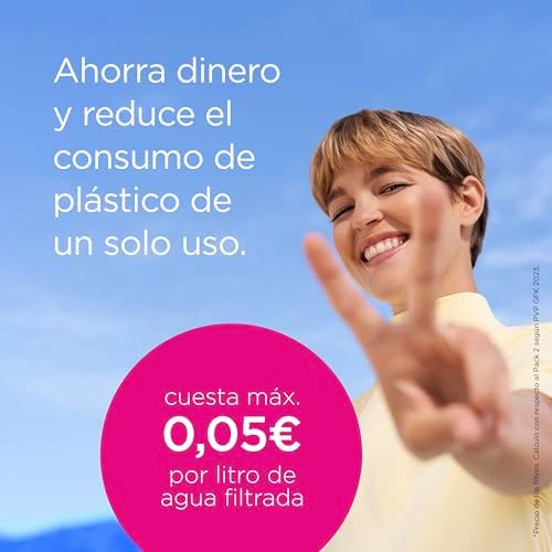 Por sólo unos céntimos el litro: 150L de agua recién filtrada en 4 semanas con un solo filtro, encaja en puertas de frigorífico, sin BPA y apto para lavavajillas (excepto el indicador digital)