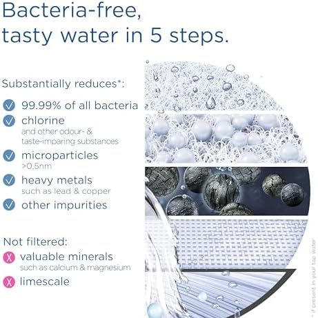 Más seguro: la filtración en 5 pasos detiene el 99,99% de las bacterias y reduce las micropartículas más finas, el cloro y otras sustancias que alteran el olor y el sabor, como el plomo y el cobre.