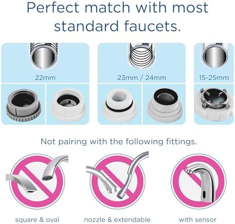 Nota! 5 adaptadores de grifo: 2 x 22 mm, 1 x 23 mm, 1 x 24 mm, 1 x 15-25 mm.