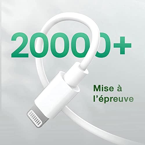 El cable Lightning está diseñado con materiales TPE de alta calidad para garantizar una vida útil de más de 20.000 pruebas de plegado para una protección y durabilidad perfectas.