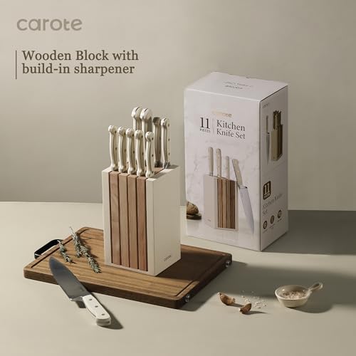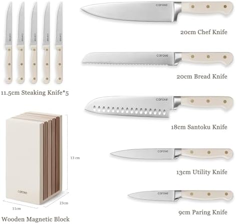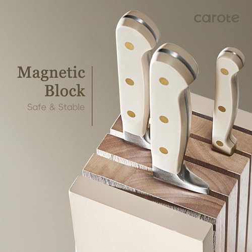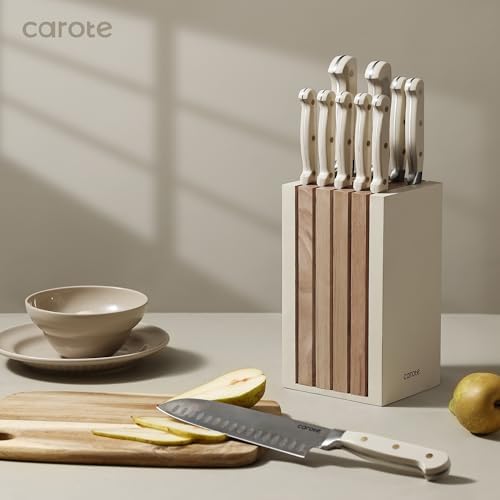 [CORTE SIN ESFUERZO] – El CAROTE juego de cuchillos de cocina está hecho de hojas de acero inoxidable con alto contenido de carbono 3CR13 para mayor precisión y precisión. Nitidez superior de nivel profesional que garantiza un corte de precisión. Disfrute de un corte fácil con el mínimo esfuerzo con este cuchillo liviano y fácil de usar