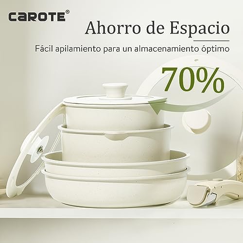 Retire el asa y la olla y sartén con asa desmontable CAROTE se pueden colocar de manera segura en el horno para satisfacer una variedad de necesidades de cocción.