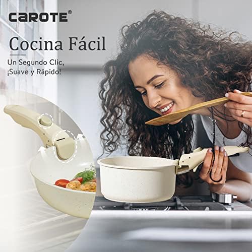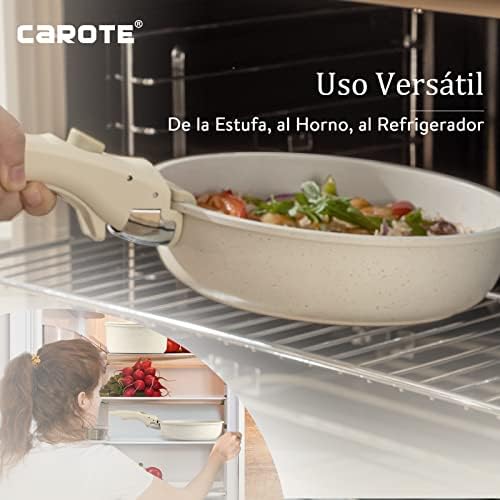 Retire el asa y la olla y sartén con asa desmontable CAROTE se pueden colocar de manera segura en el horno para satisfacer una variedad de necesidades de cocción.