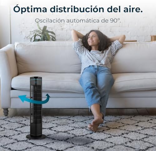 Haz que el frescor llegue a todos los rincones de tu hogar gracias a su oscilación automática de 90º que permite una distribución perfecta del aire fresco por estancia en la que ubiques el ventilador.