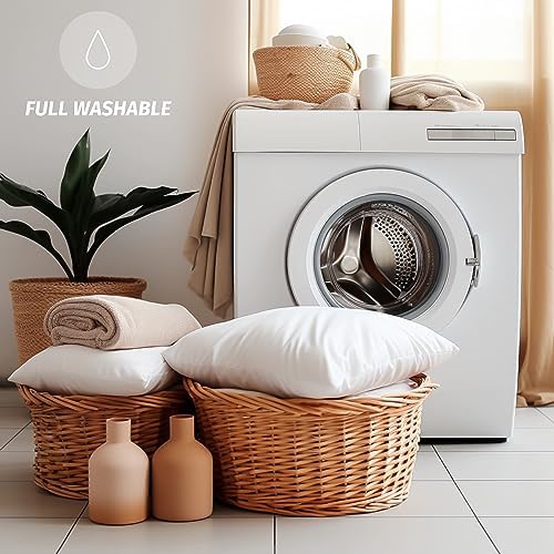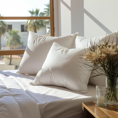 MATERIAL PREMIUM: la funda es de algodón y poliéster blanco, lo que garantiza características hipoalergénicas, antiácaros y transpirables. El relleno interior de fibra de poliéster favorece una óptima circulación del aire, manteniendo los cojines firmes e increíblemente suaves, y está diseñado para ofrecer un descanso inigualable.