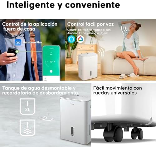 ★ CONTROLA TODO DESDE TU MÓVIL: Con la app NetHome Plus, podrás monitorear el nivel de agua en tiempo real y predecir el tiempo de llenado. ¡Mantén tu hogar libre de humedad con este deshumidificador inteligente!