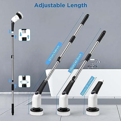 【Longitud ajustable de la mano】a barra telescópica del cepillo de limpieza está diseñada en tres piezas, y el mango telescópico se puede ajustar a 110 o 137 centímetros. Limpiar en todas las direcciones, desde la bañera hasta el techo, sin agacharse, reducir la fatiga del trabajo de limpieza y tratar bien a los ancianos y a los pacientes con dolor lumbar.2023 Cepillo de limpieza sin cable, deshacerse de los cables largos significa una limpieza y un almacenamiento más eficientes.