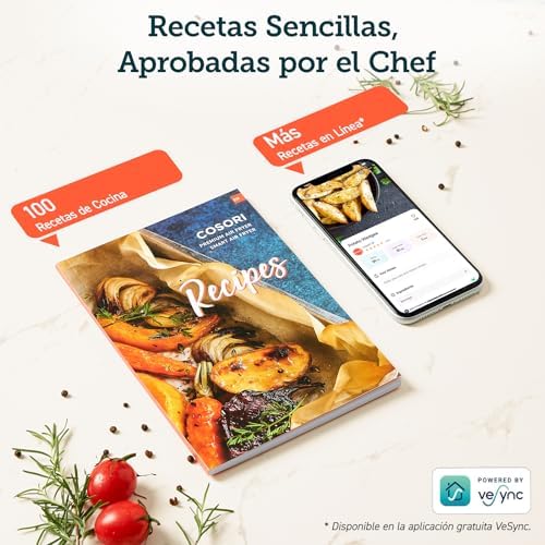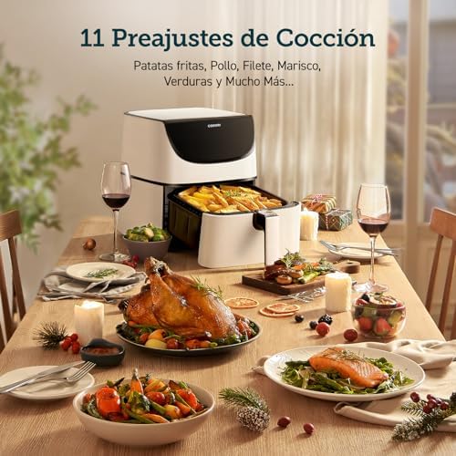 COSORI Freidora sin Aceite 5.5 L, freidora aire caliente con 100 recetas en español, 11 programas, pantalla LED táctil, cesta antiadherente, temporizador
