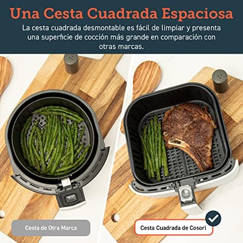 【Galardonado con el premio Red Dot Award 2019】La freidora de aire caliente COSORI está galardonada con el premio Red Dot Award 2019. Diseño cuadrado especial que se adapta mejor a tu encimera y muestra tu gusto de la moda. La cesta cuadrada XXL de 5,5 L es más grande y ofrece más espacio para llevar más alimentos que la cesta de diseño redonda en el mercado