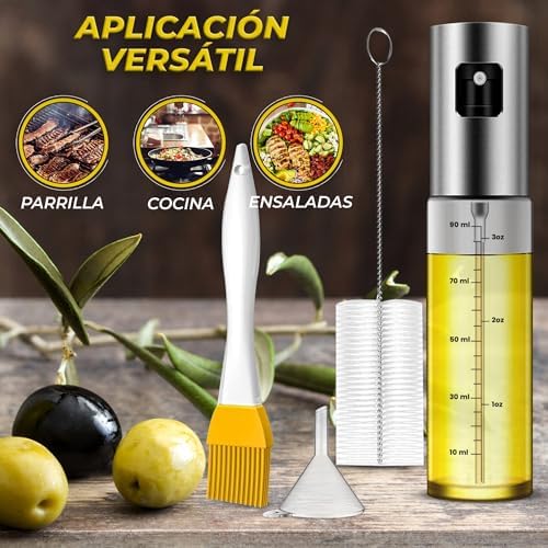 ⭐ Pulverizador multiusos ⭐ El pulverizador de aceite Spray es reutilizable y multifuncional perfecto para gadgets de cocina. Puede poner aceite de oliva, aceite de canola, aceite vegetal y vinagre en el spray de aceite. Utilíce el Espray de aceite freidora de aire cuando haga barbacoas, parrilladas, ensaladas, frituras y asados.