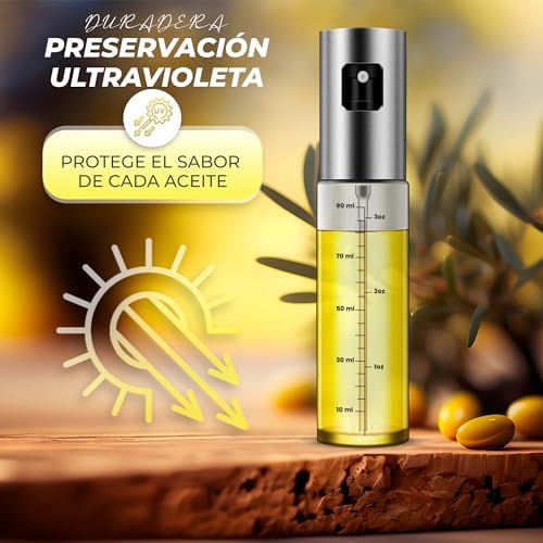 ⭐ Menos gasto, más saludable ⭐ La aceitera spray pulverizadora de produce una neblina de aceite pura y uniforme. Si necesita un utensilio de cocina que le ayude a controlar el aceite este Espolvoreador de aceite es ideal para ti. Podrás distribuir el aceite de forma uniforme gastando menos producto y cocinando con menos calorías. Alto uso eficiente, sin desperdicio. con este Difusor Aceite Cocina, mejora el sabor, más saludable.