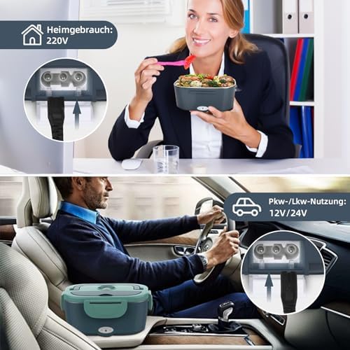 Comidas saludables en todas partes: no se requiere microondas y se requieren colas para calentar alimentos. Simplemente conéctalo y calienta tu comida en la oficina o en el coche/camión con los cables de alimentación de 110/12 V. Disfruta de tu comida casera cálida y saludable.