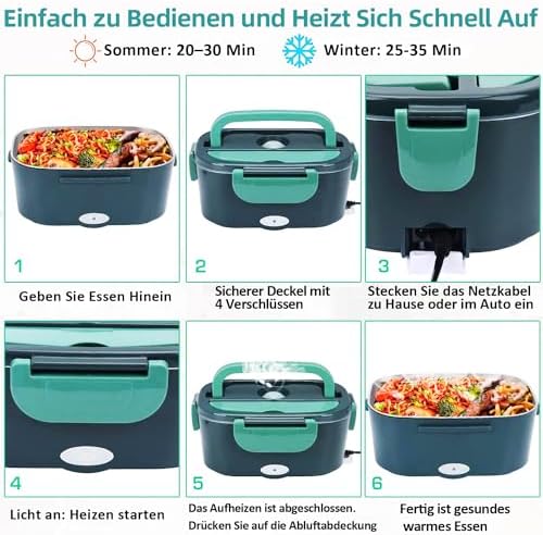 Fácil de limpiar: la fiambrera eléctrica cumple con los estándares de seguridad para los materiales alimenticios. El recipiente interior es extraíble y, por lo tanto, muy fácil de limpiar.