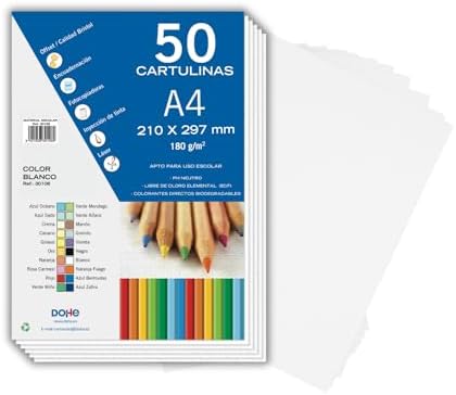 [PACK DE 50 CARTULINAS BLANCAS]: Versatilidad para todos tus proyectos con este packde 50 cartulinas blancas A4 de alta calidad, perfectas para manualidades, impresiones y proyectos escolares
