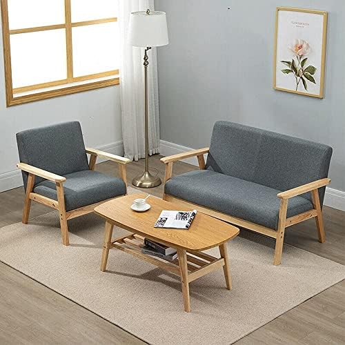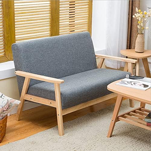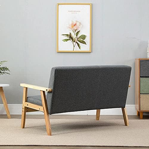 Dripex Sofá de 2 plazas, sofá de tela, moderno y escandinavo, sofá lounge de madera y tela de lino, sofá tapizado para salón, dormitorio, oficina, gris oscuro, 113 x 67 x 75 cm