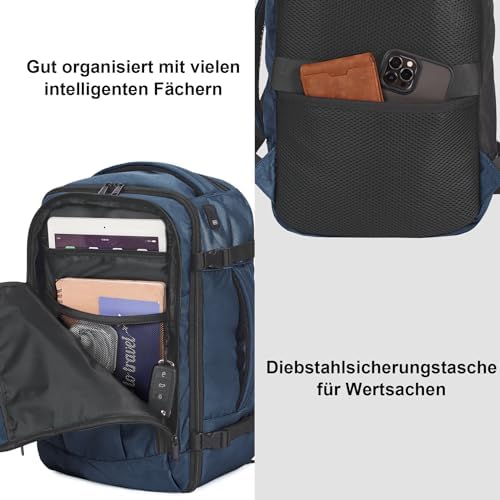 ECOHUB 30L Mochila 45x36x20 Easyjet, Mochila Viaje Cabina Avion con 13 Bolisillos, Debajo del Asiento Mochila Equipaje de Mano, Pet Reciclada Bolsa de Viaje Hombre Mujer, Patentado(Azul)