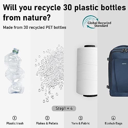 【TEJIDO PET RECICLADO DE ALTA CALIDAD】: La mochila de viaje ECOHUB es 100% ecológica, ya que está fabricada con un tejido de alta calidad hecho de 30 botellas de plástico PET recicladas. Este tejido reciclado es resistente al agua y ligero y está certificado por GRS. Además, cuenta con cremalleras Heavy Duty SBS y refuerzos en las costuras. ECOHUB garantiza la mejor calidad en su bolsa de viaje. ¡Ordena la tuya hoy y viaja con estilo sin dañar el medio ambiente!