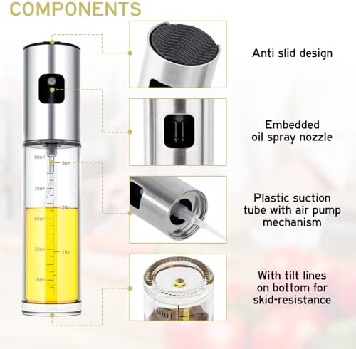 POLIVALENCIA: ampliamente utilizado en cocinas, barbacoas, para filetes, ensaladas, air fryer… El diseño compacto de la boquilla evita cualquier fuga y mantiene la botella limpia.
