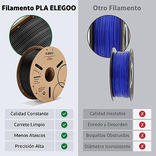 【Precisión dimensional y consistencia】 Las tolerancias estrictas garantizan que estos filamentos PLA de 1,75 mm de diámetro impriman mucho más suave y estable con una precisión dimensional de +/- 0,02 mm; bobina de 1 kg (2,2 libras).