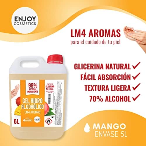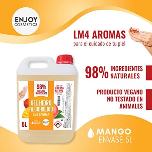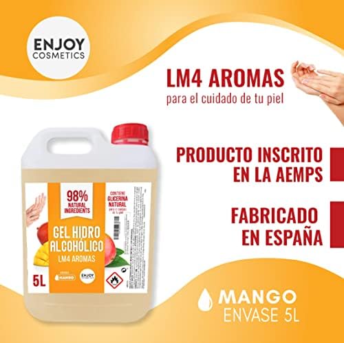 ENJOY COSMETICS | Gel Hidroalcohólico | Aroma Suave a Mango | 70% Alcohol | Con Glicerina Natural | Para el Cuidado de la Piel | 98% Ingredientes Naturales | Ideal para Casa y Comercios | 5000 ml