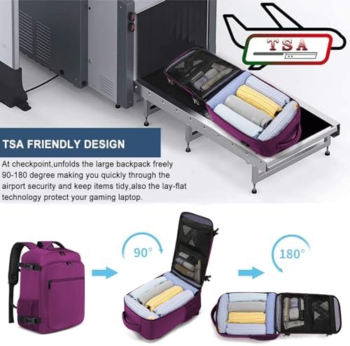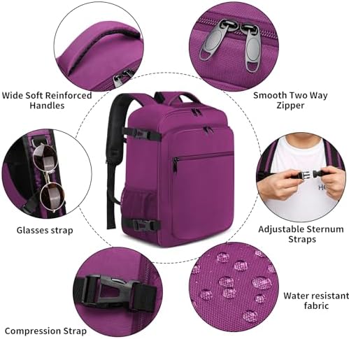 Equipaje de Mano 40x20x25 Ryanair Mochila Viaje Cabina Avion 20L Mochila Avion Hombre Mujer Bolsa de Viaje Portatil 14 Pulgadas Maletas Debajo del Asiento Viagem Bolsa con Puerto USB, Morado