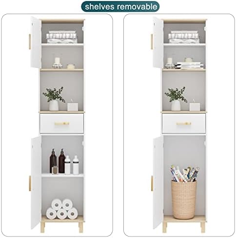 ✅【Simple montaje, seguridad considerada】Con nuestro manual de montaje detallado y los accesorios completos, podrá montar este armario alto sin dificultad. El dispositivo antivuelco mejorará aún más la estabilidad del armario de pie