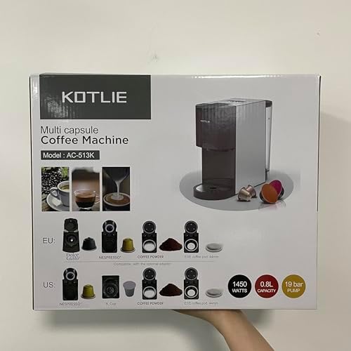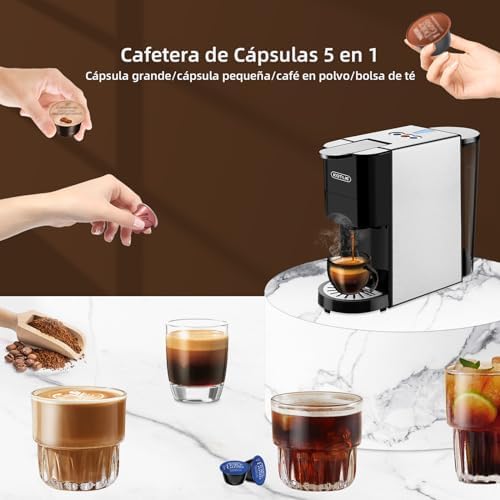 Expreso 5 en 1 Cafetera de Capsulas para Dolce Gusto/Nespresso Original/Lavazza Mio/Ground/ESE Pods,19 Bar Alta Presión Apagado Automático Depósito cafetera capsulas AC-513K