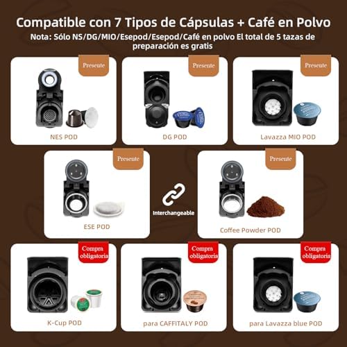 ☕【5 en 1 Cafetera】5 diferentes experiencias de café con 1 máquina de café, cafetera compatible con Dolce Gusto/Nespresso/ Starbucks/Lavazza a modo mio /granos yESE café de la vaina.mientras que el ahorro de dinero, sino que también le trae una vida más simple felicidad.