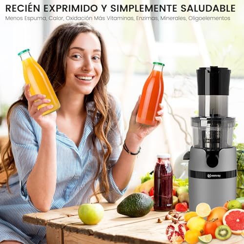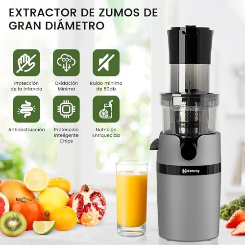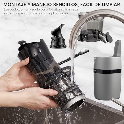 Fácil de Desmontar y Limpiar: el Extractor lento Keenray está hecho de acero inoxidable antioxidante apto para uso alimentario de alta calidad. Diseño de desmontaje de un botón, simplemente para montar y desmontar. Fácil de limpiar, fácil de limpiar con agua corriente. Está equipado con un cepillo de limpieza para facilitar la limpieza de los Extractores. Las piezas son aptas para lavavajillas.