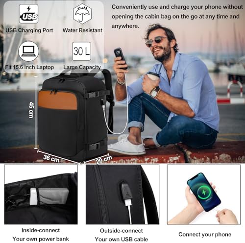 EZUOLA Mochila Viaje Cabina Avion 45x36x20 para Easyjet Mochila Viaje para Portatil 15.6 Pulgadas Antirrobo Impermeable Mochila Cabina Avion con Puerto USB Mochilas Equipaje de Mano para Hombre Mujer