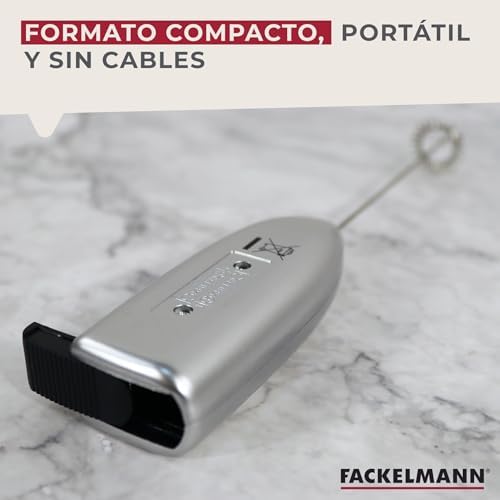 Fackelmann cuenta en su surtido con éste otro batidor a pilas. Está provisto de unas aspas perfectas para espumar leche y mezclar.