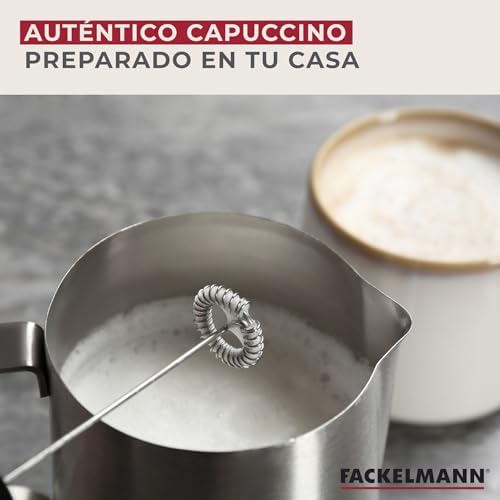 PRÁCTICA ESPUMADORA DE MANO: excelente batidor manual y emulsionador para espumar leche de forma fácil y rápida y preparar en casa un auténtico capuccino con una gruesa capa de espuma; utiliza 2 pilas de 1, 5v cada una (no incluidas)