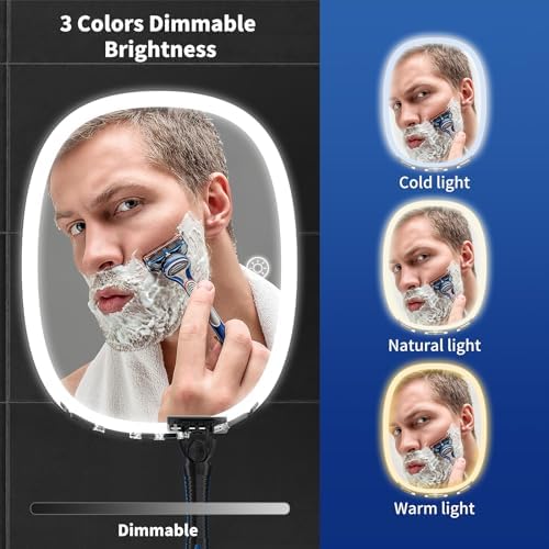 💡【Espejo de afeitado regulable en 3 colores de luz】El espejo de ducha sin niebla ofrece 3 colores de luz: luz blanca, luz cálida y fría. Simplemente cambie la temperatura del color entre la luz cálida y la luz blanca para ver la precisión de su maquillaje en diferentes situaciones intermitentes, como el día, la noche y el lugar de trabajo. Interruptor táctil para seleccionar el color de la luz y pulsación larga para ajustar el brillo de la luz.