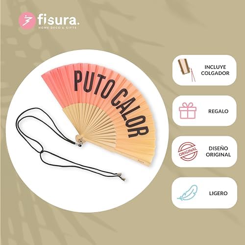 🥵 ABANICO CON MENSAJE – Combina este abanico degradado con tus looks veraniegos y deja claro que estás harto del p*to calor, del sol que te achicharra y de los hielos derretidos en minutos ¡Refréscate con humor con el abanico Fisura mientras gritas a los cuatro vientos tu “hate” al calorazo!