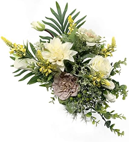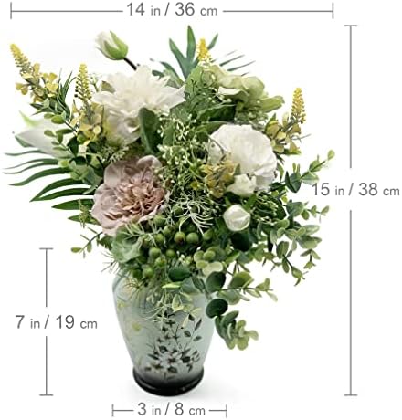 Listo para usar: arreglo de flores artificiales preensamblado. Listo para usar. Posee al instante una elegante pieza de la naturaleza lista para usar, como un ramo de flores reales que acaba de recoger del jardín. El jarrón de cerámica incluido no solo tiene un estilo único por sí mismo, sino que está en elegante armonía con el arreglo floral. Te ahorré un viaje a la tienda local.
