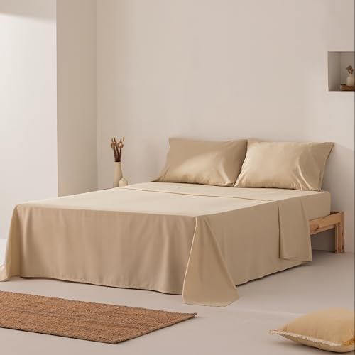 Juego Sábanas 4 PIEZAS – Incluye 1 Bajera ajustable de 135 x 190/200 cm + 1 sábana encimera de 235×270 cm + 2 Fundas de almohada de 50×75 cm