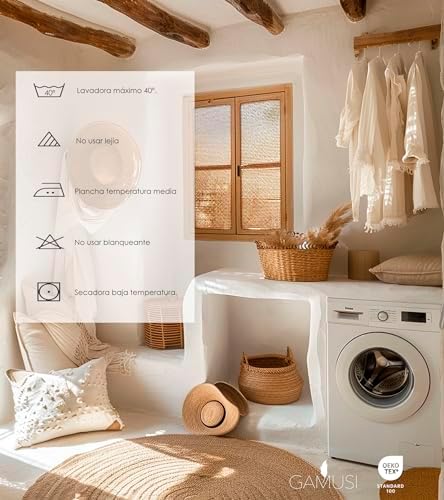 Mantenimiento – Lavable en lavadoras hasta 40ºC. Tiene un fácil secado. Puede usar secadora a baja temperatura. Además, permite usar la plancha para un mejor acabado y suavidad en el tacto. No usar lejía ni blanqueantes.