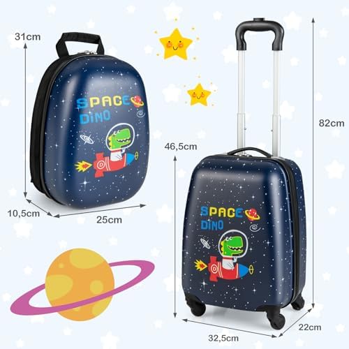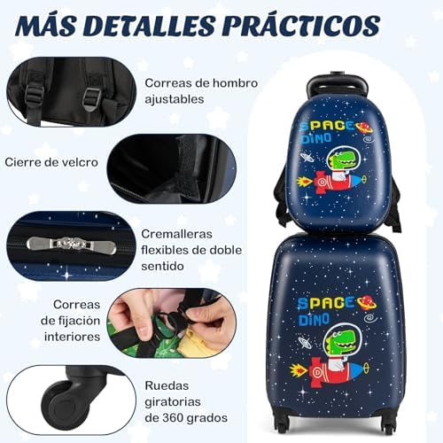 Esta bonita maleta incluye una maleta impresa por un animal lindo y una mochila a juego, es perfecta para viajar. Tener un espacio bastante grande, este producto satisface bien sus necesidades. Además, la mochila a su disposición para almacenar y sacar rápidamente objetos pequeños de sus hijos. Esta bolsa de viaje se convertirá en un compañero ideal durante los viajes en avión, coche, barco y tren.