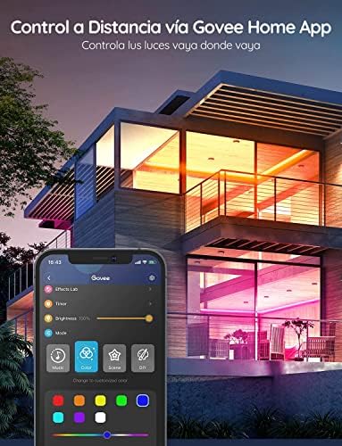 Funcion Completa App: Con la App Govee Home la tira LED se puede hacer bricolaje. Crear el propio estilo de las luces y luego compartir la idea única con todo el mundo en el Estudio de Luces. Controla fácilmente las luces desde cualquier lugar en la casa.