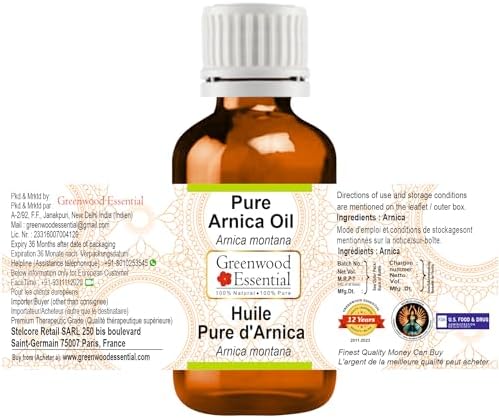 Greenwood Essential: aceite puro de árnica (Arnica montana) de grado terapéutico apto para aromaterapia y el cuidado de la piel y el cabello. Acerca de Greenwood Essential: somos los mayores productores de aceites esenciales y aceites portadores de la India y tenemos clientes en más de cien países. Estamos especializados en obtener los mejores aceites naturales del mundo de fuentes responsables. Es imposible producir todo tipo de aceites naturales de calidad prémium en un mismo país o región. Por eso trabajamos con fabricantes especializados en distintos aceites, dependiendo de los ingredientes naturales que tienen a su alcance, por ejemplo, orégano de Moldavia, lavanda de España o rosa mosqueta de la región andina. Nuestros aceites cuentan con un certificado que confirma su origen natural, su trazabilidad y su excelente calidad, así podrás comprar con total confianza y a un precio asequible. Todos nuestros aceites se someten a rigurosas y avanzadas pruebas y solo se ponen a la venta una vez comprobados sus certificados de origen y pureza. También elaboramos una de las gamas de productos naturales para el cuidado personal más importantes de la India. Nuestro objetivo es la satisfacción de todos aquellos clientes que confían en nosotros.
