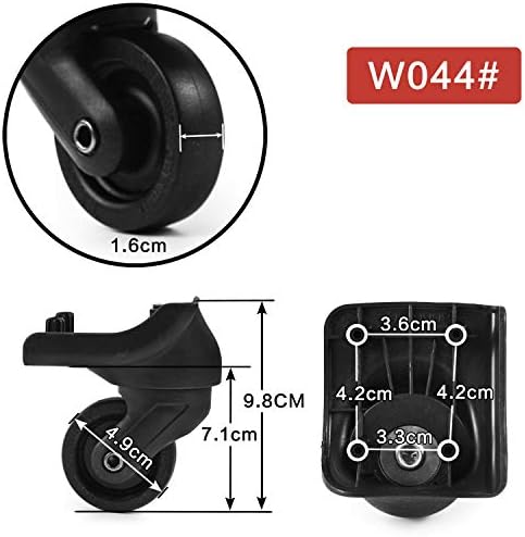 Nota: Este maletín de ruedas se utiliza para reparar el reemplazo de la maleta DIY. Las ruedas no caben en todas las maletas, es necesario comprobar el tipo y el tamaño antes de realizar el pedido. Si eliges el tipo correcto, pero la distancia entre orificios de la rueda puede no ser completamente igual, necesitas perforar un agujero en tu maleta y luego montarlo; Material: plástico + rodamiento de acero + rueda silenciosa; Lista de embalaje: 1 par (2 unidades) de ruedas para maleta y tornillos autorroscantes a juego; Características del producto: resistente al desgaste, buena capacidad de carga. Recordatorio: para ahorrar tiempo en la selección del tipo de rueda, puede enviarnos su imagen de rueda original o dañada, intentaremos encontrar un tipo de rueda adecuado y recibir comentarios lo antes posible